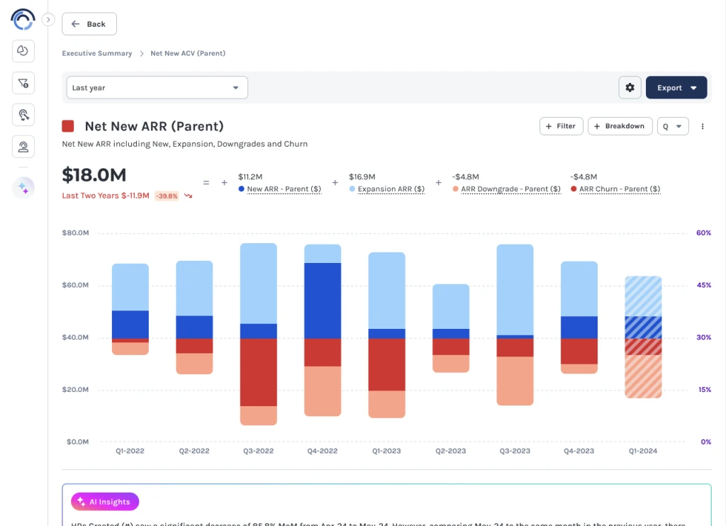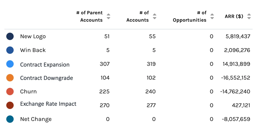 - Exchange Rate Impact Isolation: Create a separate line item in ARR waterfall charts for FX impact, clearly distinguishing between business-driven changes and currency-driven changes in ARR.
