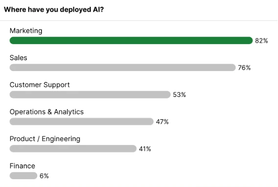 A live survey at Pavilion’s GTM Summit found that 82% of respondents had already deployed AI in marketing, with 72% leveraging it in sales.