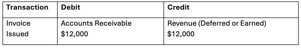 You issue a $12,000 annual invoice on Jan 1.