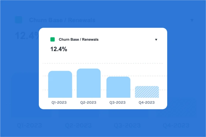 Churn Base Over Renewals is a key performance indicator that measures the proportion of churned customers based on the number of renewal opportunities. This metric provides insights into the effectiveness of customer retention efforts during renewal periods. It helps businesses assess the success of strategies aimed at retaining customers when their contracts come up for renewal.