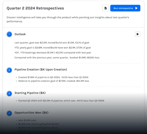 Enter Discern. Instead of trying to do everything, we’ve focused on what really matters: making it easy for sales leaders and RevOps professionals to gain insights they need to actually move the needle.