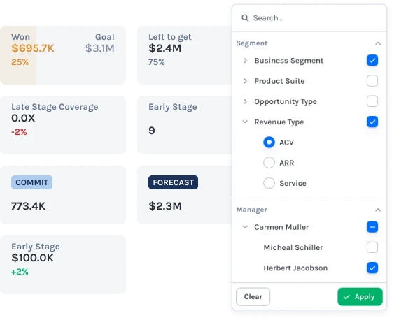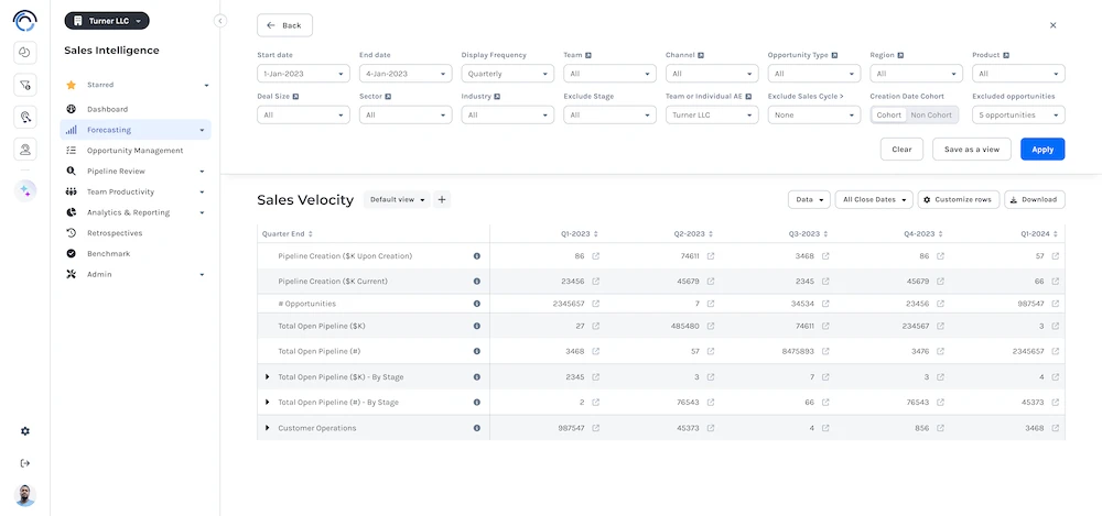 Follow sales pipeline trends and opportunity risks on a daily, weekly, monthly or quarterly basis to keep a finger on the pulse and deploy sales coaching right where and when it’s needed.