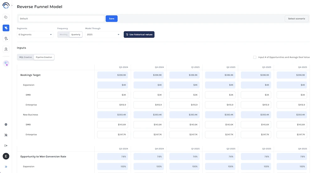 Discern helps you create an effective pipeline plan by integrating real-time pipeline data from your existing systems. Our AI-driven tools assist you in setting the right pipeline targets for any segment, offering both reverse funnel modeling and pipeline planning to tailor the plan to your business needs.