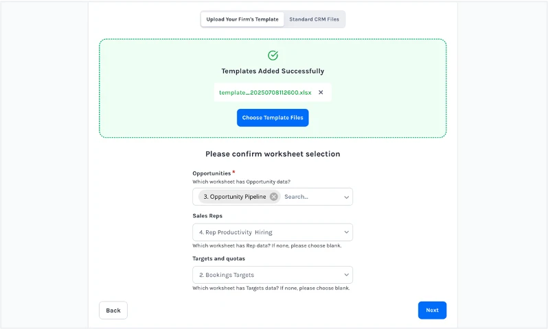 Discern ingests data from spreadsheets or connects directly to Salesforce, HubSpot, Pipedrive, and other major CRM platforms. We also support custom integrations for proprietary systems and can work with existing data warehouses or business intelligence tools.